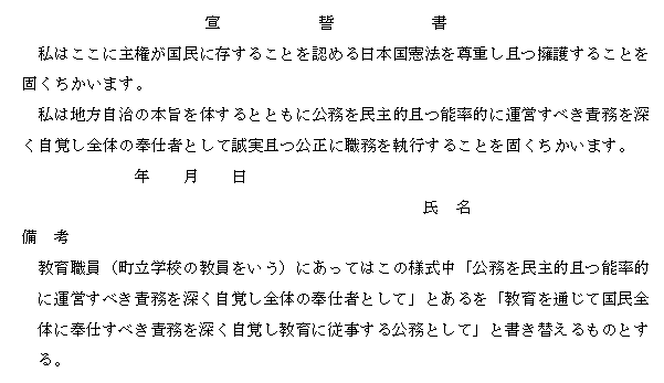 別記様式による宣誓書に署名してからでなければその職務を行ってはならない。