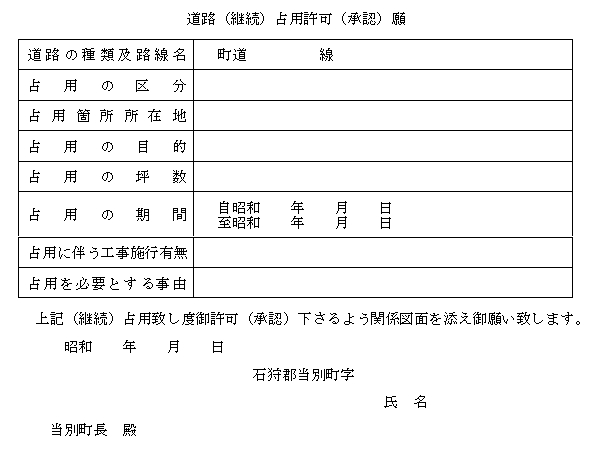第3条 法第32条第1項の規定により道路の占用の許可を受けようとするものは、町長に申請書(