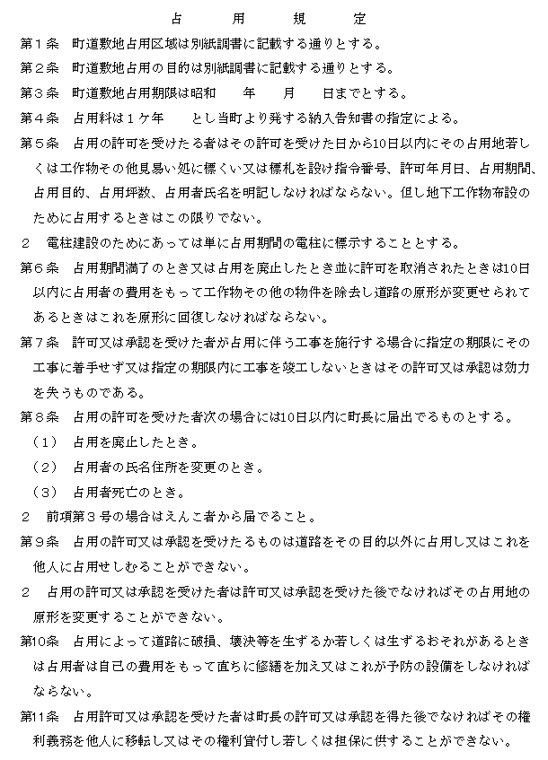 第8条 この規則に定めるものの外道路の占用について必要な事項は町長がそのつど定める。
