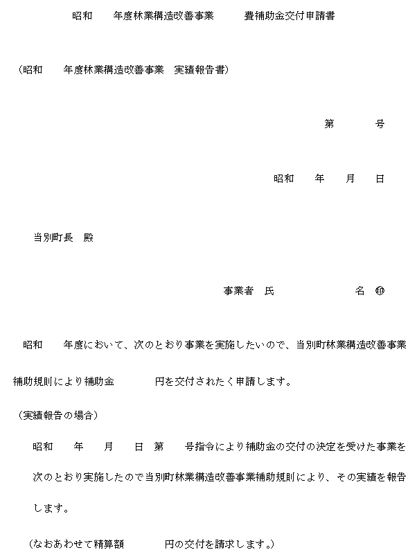 第1条 当別町における林業構造改善事業の促進を図るため林業構造改善事業に必要なる経費について、この規則の定めるところにより予算の範囲内において補助金を交付する。