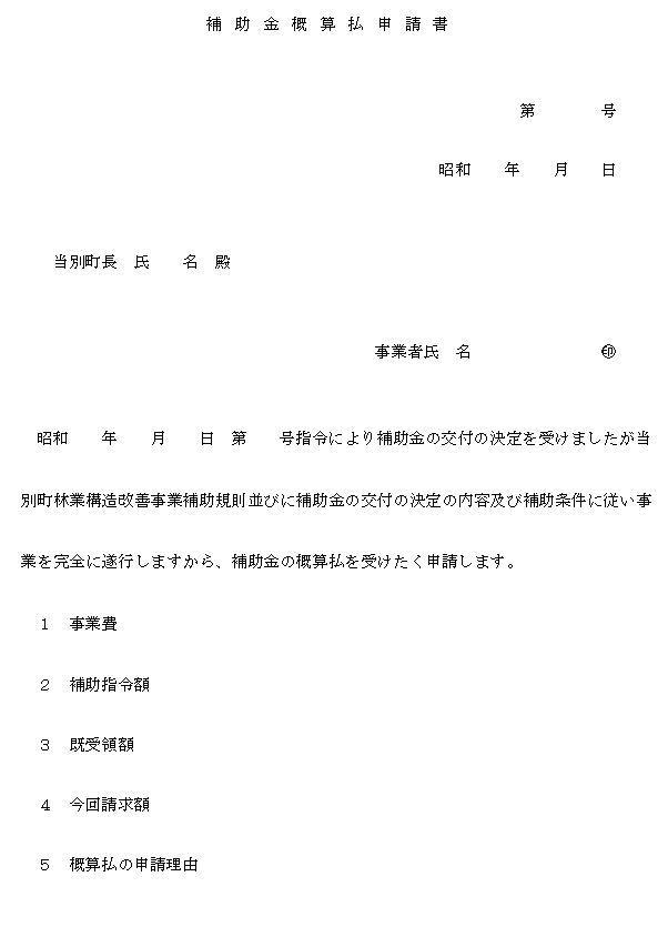 別記第2号様式の概算払申請書を町長に提出しなければならない。