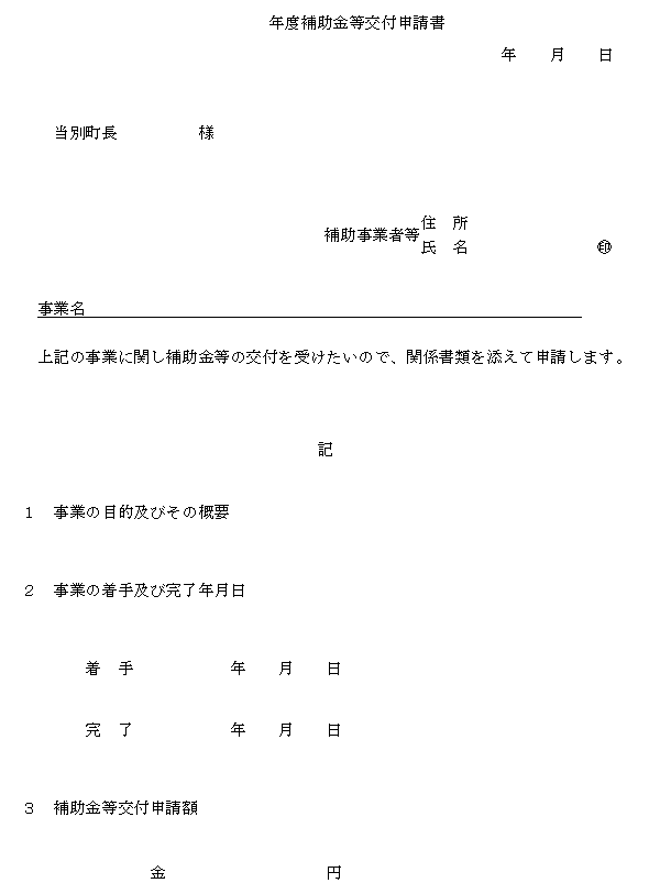 第4条 補助金の交付を受けようとする農業団体は、毎年町長が定める日までに補助金等交付申請書(
