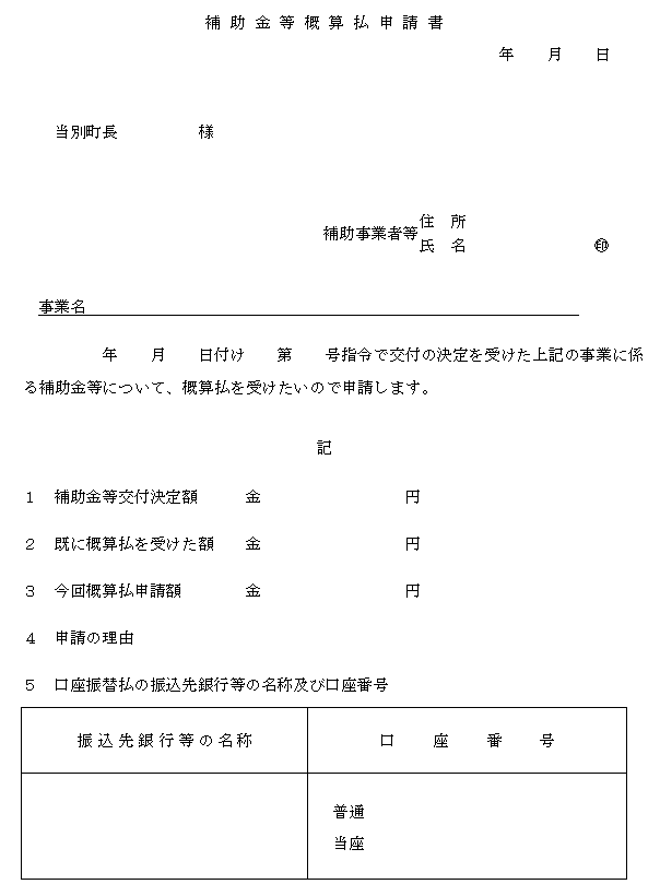 第7条 補助金の交付の決定を受けた農業団体は(以下「補助事業者」という。)が補助金の概算払を受けようとするときは、補助金等概算払申請書(