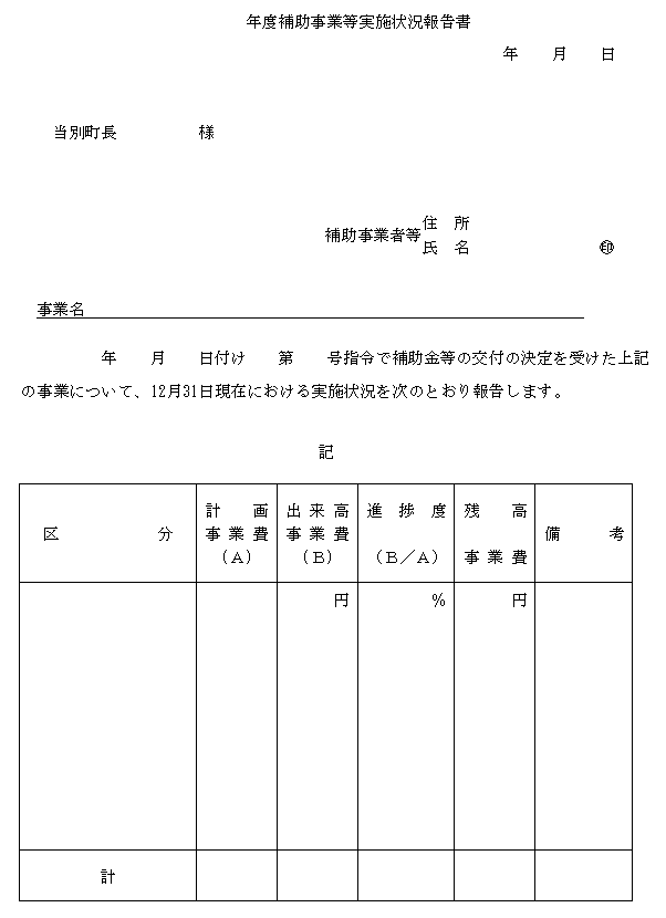 2 補助事業者は、補助金交付の決定に係る年度の12月31日現在における補助事業の実施状況に関し、補助事業等実施状況報告書(