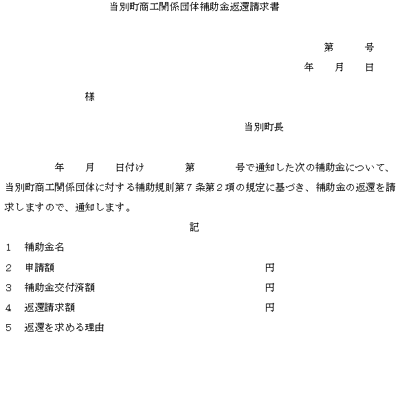 2 町長は、前項の規定による返還を命ずるときは、当別町商工関係団体補助金返還請求書(