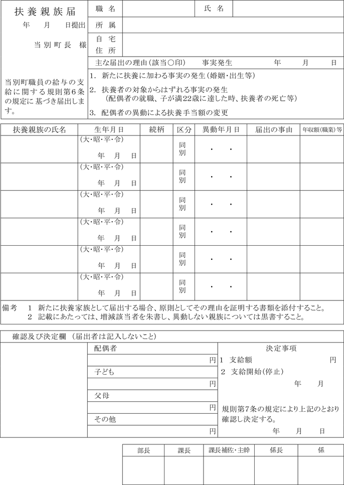 第6条 職員の扶養親族に係る届出は、扶養親族届(