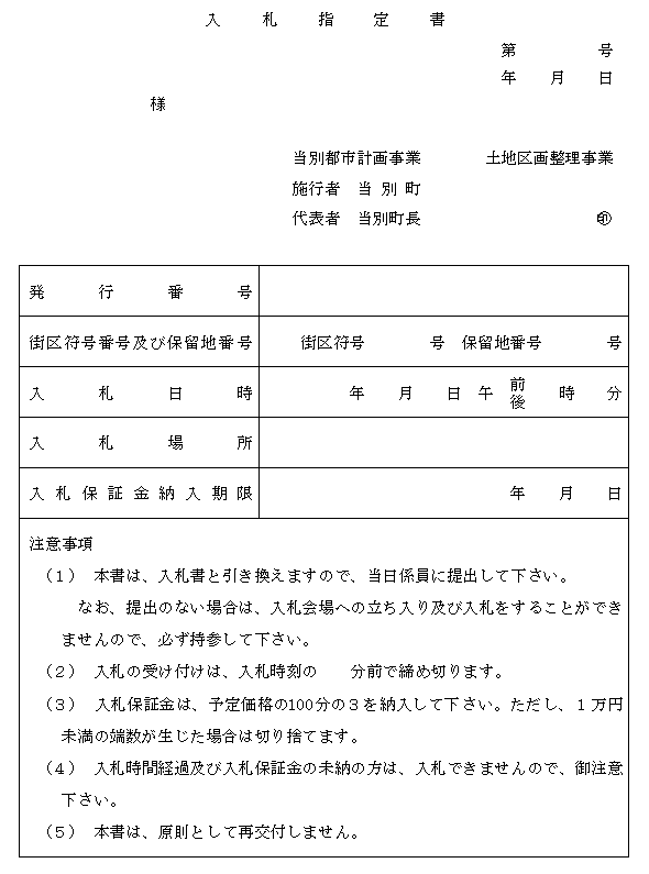 2 町長は、前項の規定による申込みがあった場合は、第3条に規定する資格を審査のうえ適当と認めたときは、申込者に入札指定書(