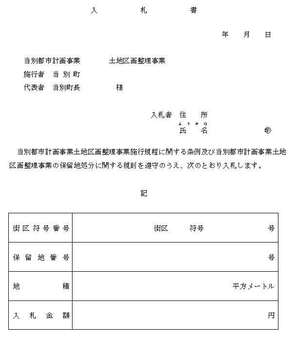 当別都市計画事業土地区画整理事業の保留地処分に関する規則