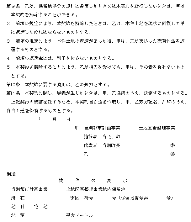 第29条 前条の規定による通知を受けた者(以下「契約の相手方」という。)は、当該通知を受けた日から10日以内に保留地売買契約書(