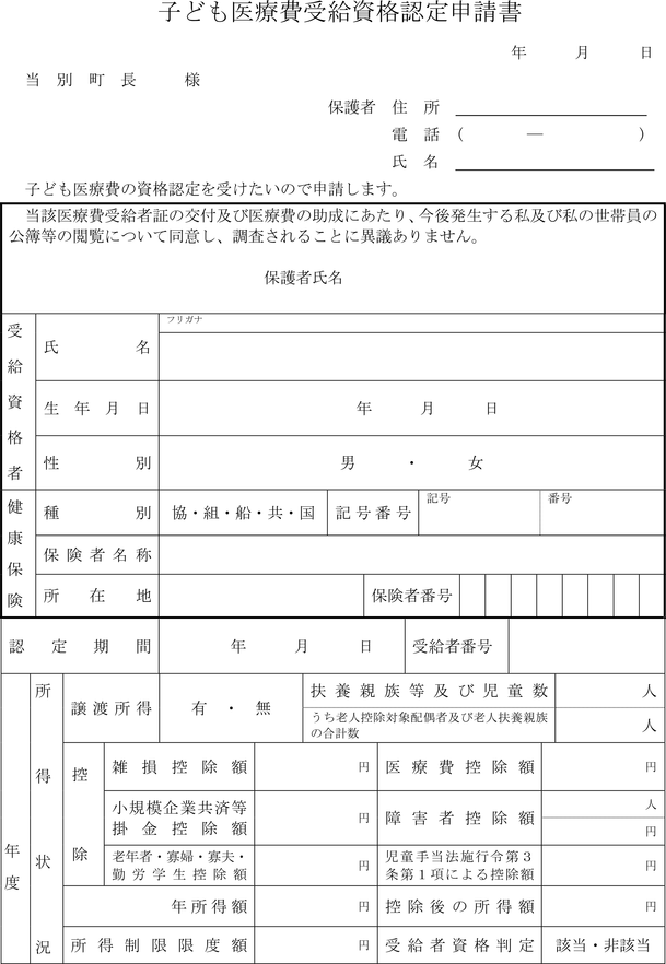 第2条 条例第4条第1項の規定により受給資格者の認定申請をしようとする保護者は、子ども医療費受給資格認定申請書(