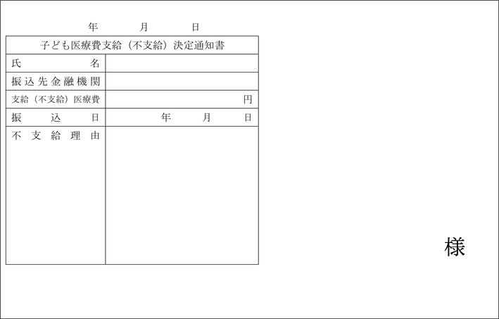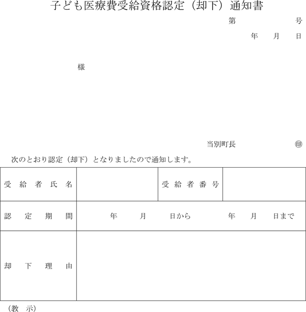 第3条 町長は、前条の申請を受理したときは、内容を審査し、認定の可否を子ども医療費受給資格認定(却下)通知書(