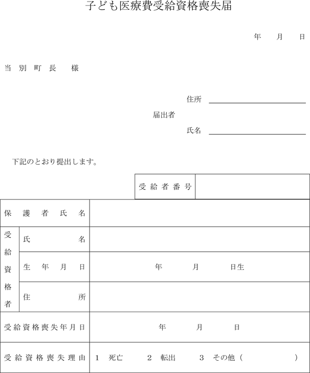 2 受給資格者が前項に該当したとき、その保護者は、速やかに受給者証とともに子ども医療費受給資格喪失届(