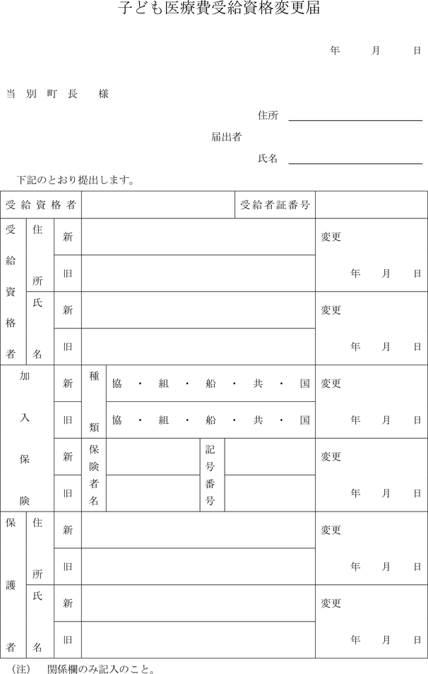 第7条 受給資格者が次の各号の一に該当したとき、その保護者は、子ども医療費受給資格変更届(