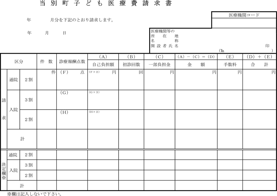 2 前項の規定にかかわらず医療機関が医療費を請求するときは、当別町子ども医療費請求書(