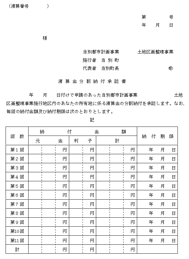 2 施行者は、前項の規定に基づき提出された清算金分割納付申請書を審査し、承認した場合には清算金分割納付承認書(