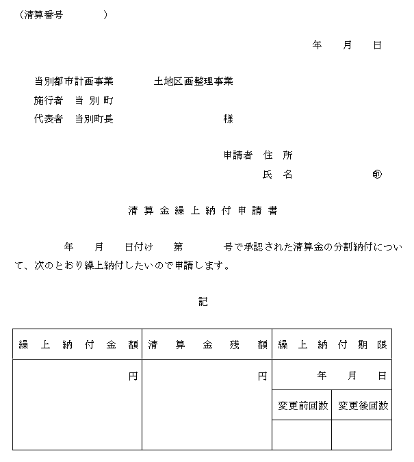 2 施行者は、前項の規定に基づき提出された清算金繰上納付申請書を審査し、承認した場合には清算金繰上納付承認書(