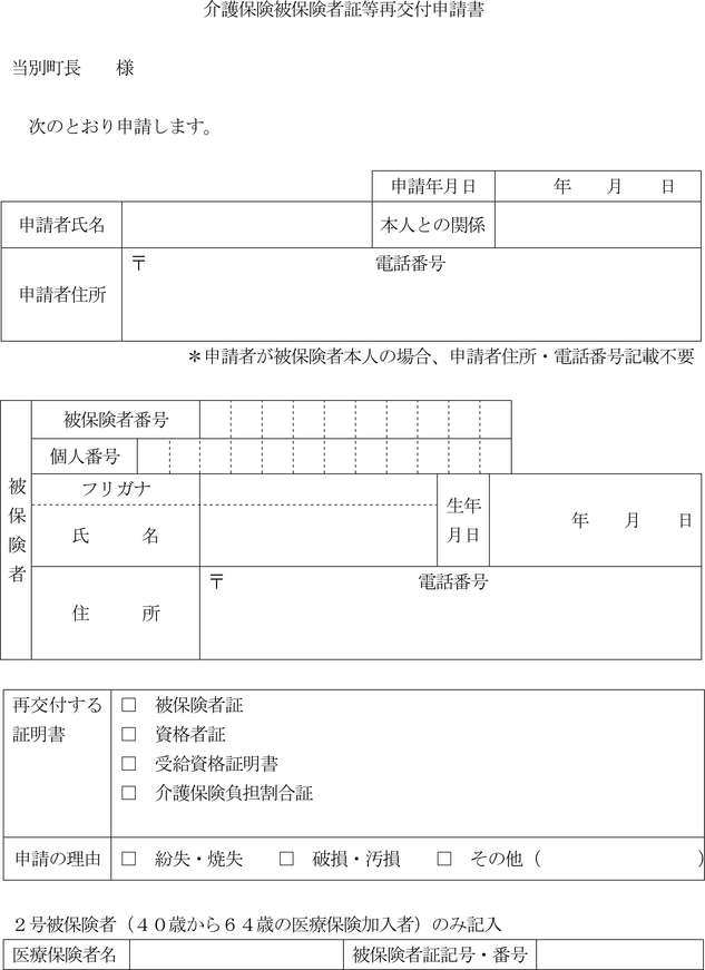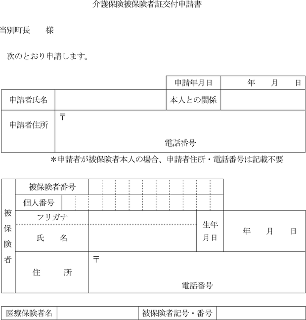 別記様式第6号)に被保険者証を(被保険者証未交付第2号被保険者を除く。)添えて、町長に申請しなければならない。