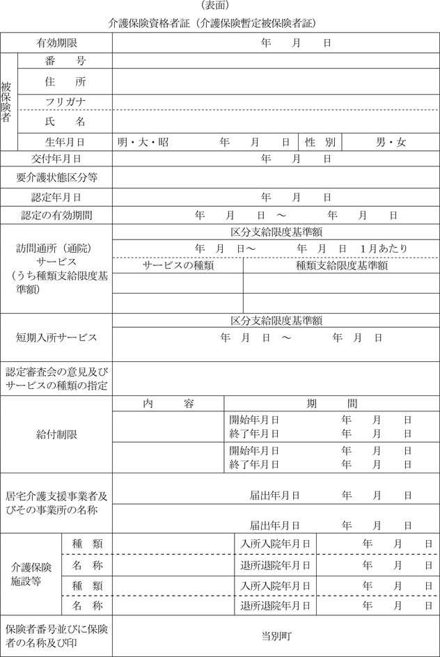 2 町長は、前項の申請があったとき、必要と認めた場合は、期間を限って、被保険者証と同等の効力を有する介護保険資格者証を当該申請者に交付するものとする。