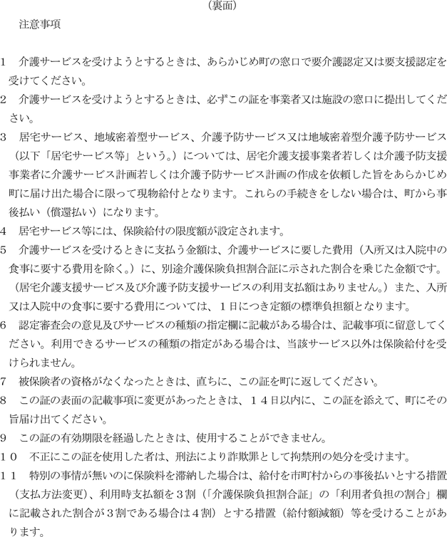 2 町長は、前項の申請があったとき、必要と認めた場合は、期間を限って、被保険者証と同等の効力を有する介護保険資格者証(
