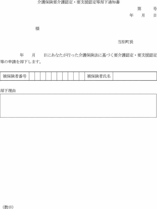 6 町長は、第1項の申請を行った者が、法第27条第10項の規定に該当すると認められる場合は、介護保険要介護認定・要支援認定却下通知書(