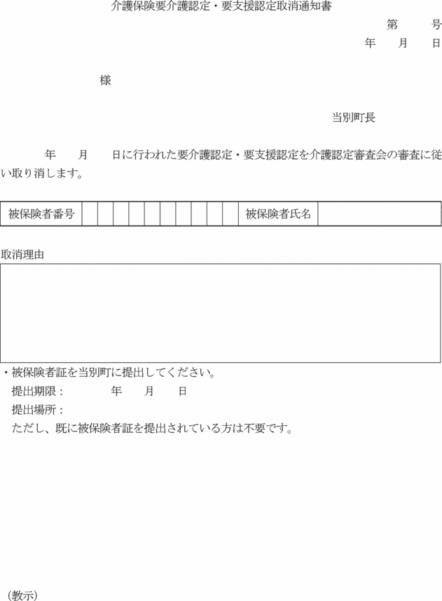2 町長は、要介護被保険者等が法第31条第1項各号又は法第34条第1項各号の規定に該当すると認められる場合は、介護保険要介護認定・要支援認定取消通知書(