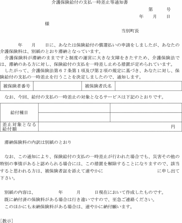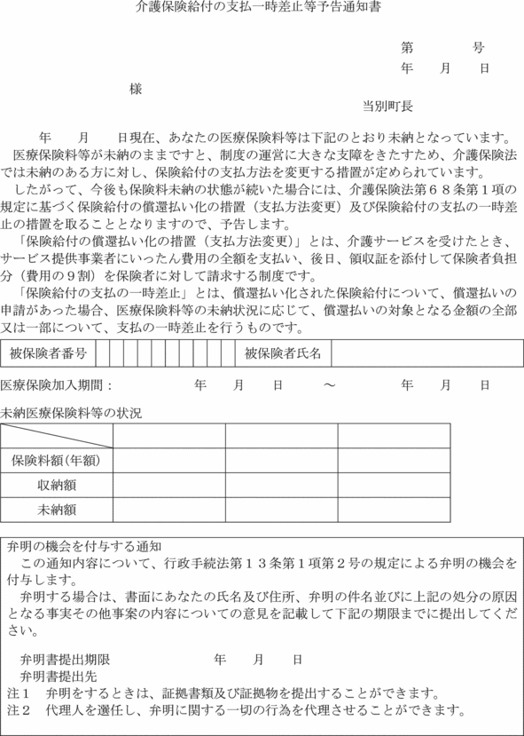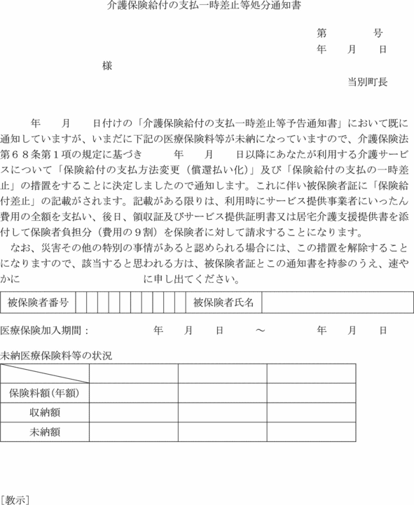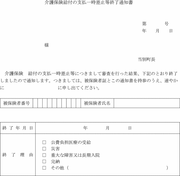4 町長は、法第27条第11項のただし書の規定に該当すると認められる場合は、介護保険要介護認定・要支援認定等延期通知書(