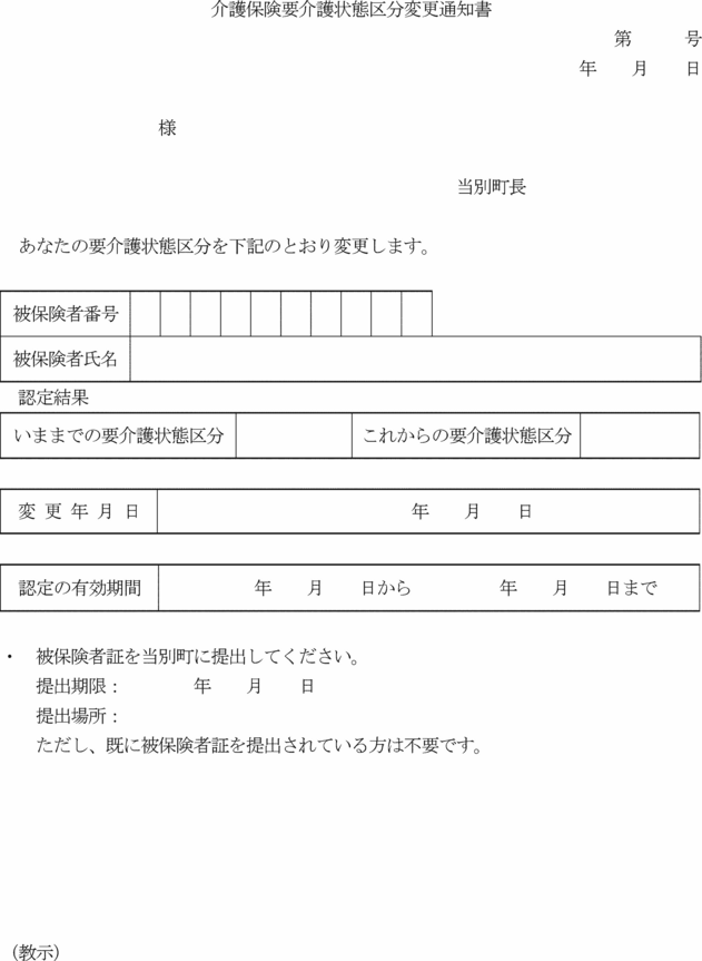 4 町長は、第1項の申請により要介護状態区分の変更の認定がなされた場合又は要介護状態区分の変更の認定に該当しないと認められた場合は、介護保険要介護状態区分変更通知書(