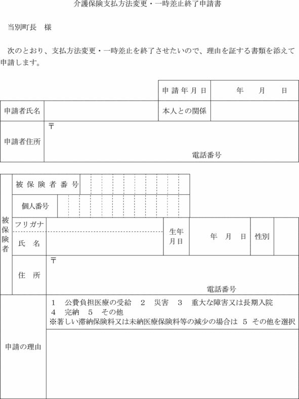 第33条 条例第9条の規定により、保険料の徴収猶予を受けようとする者は、介護保険料減免・徴収猶予申請書を町長に提出しなければならない。