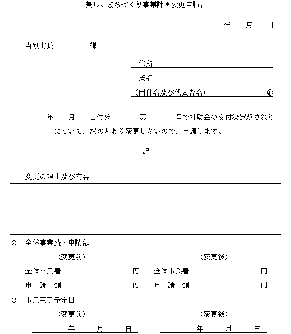 別記様式第5号)を町長に提出しなければならない。ただし、予定申請額が減額する場合はこの限りでない。