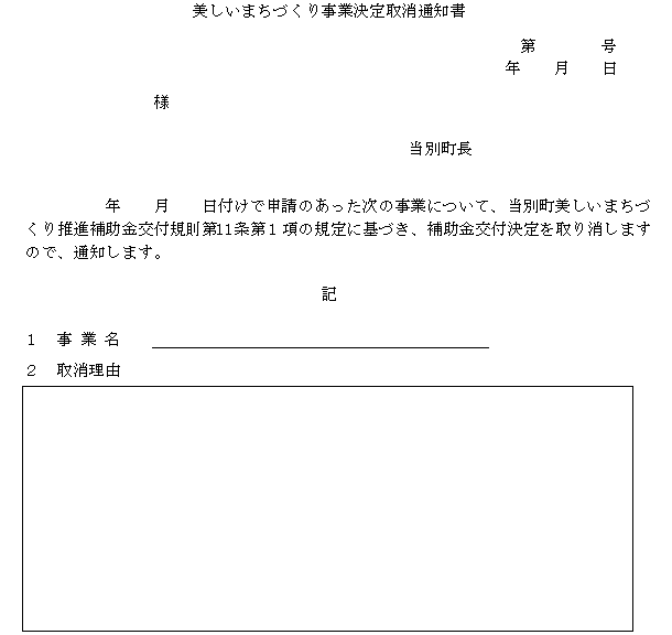 2 町長は、前項の規定による取り消しをする場合には、美しいまちづくり事業決定取消通知書(