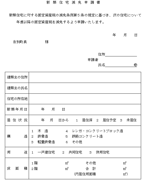 4 新築された住宅に限り減免するもので、移築された住宅は減免の対象としない。