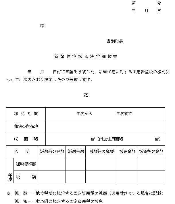 新築住宅に対する固定資産税の減免条例施行規則