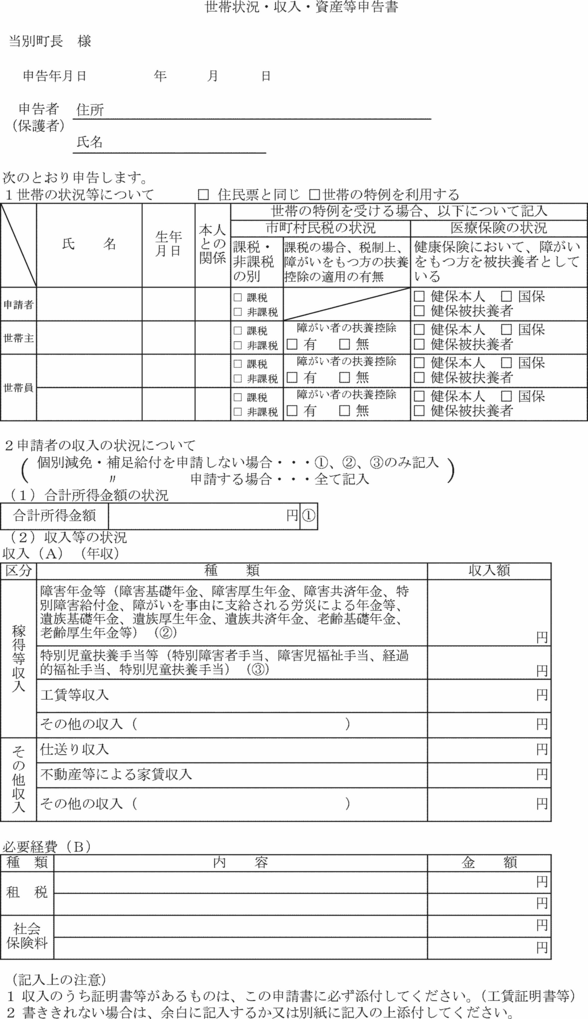 (個別減免等申請に係る世帯状況等の申告)