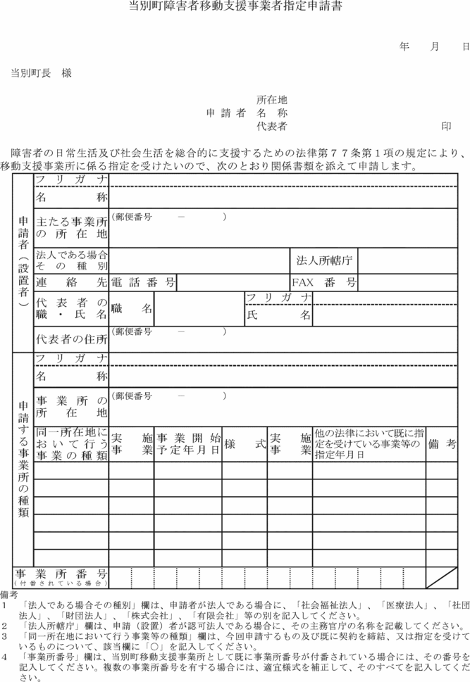 別記様式第3号)を町長に提出し、移動支援事業に関する指定を受けなければならない。