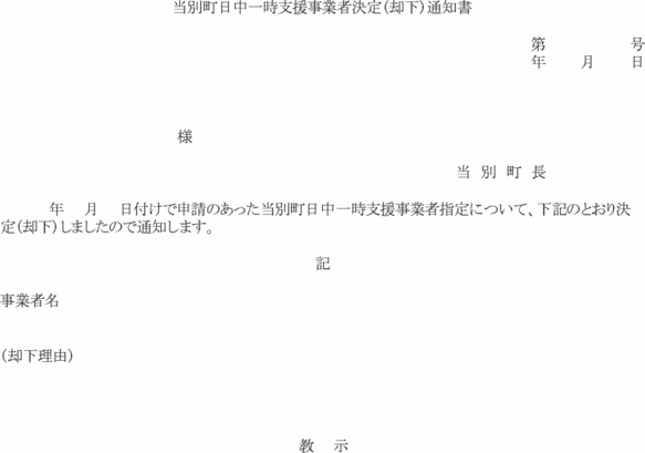 (日中一時支援事業者の指定の決定通知)