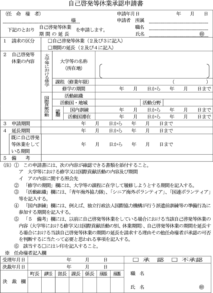 第4条 自己啓発等休業の承認の申請は、自己啓発等休業承認申請書(
