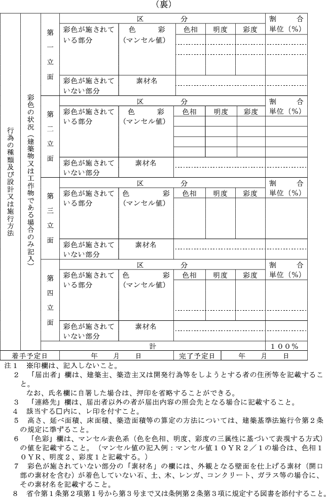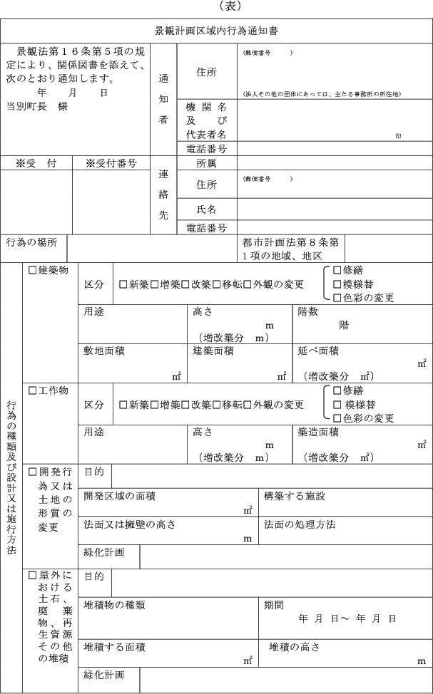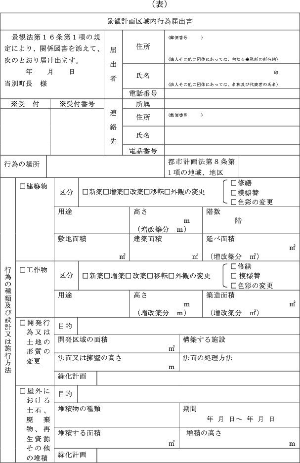 (1) 法第16条第1項の規定による届出 景観計画区域内行為届出書(