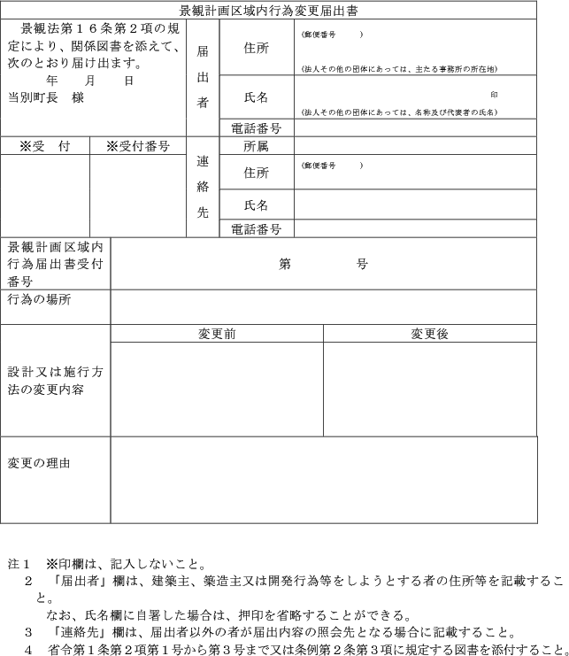 (2) 法第16条第2項の規定による届出 景観計画区域内行為変更届出書(