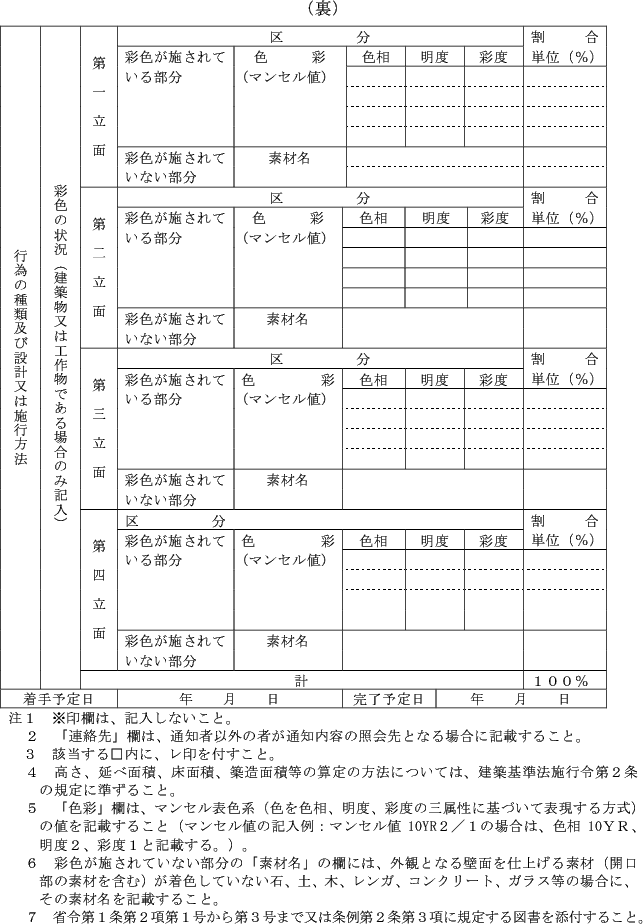 (3) 法第16条第5項の規定による通知 景観計画区域内行為通知書(