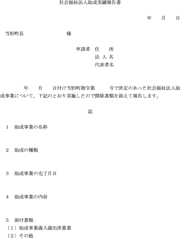 第5条 社会福祉法人は、助成の対象となった事業が完了したときは、社会福祉法人助成実績報告書(