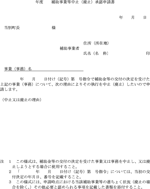 (2) 補助事業等を中止し、又は廃止する場合においては、補助事業等中止(廃止)承認申請書(