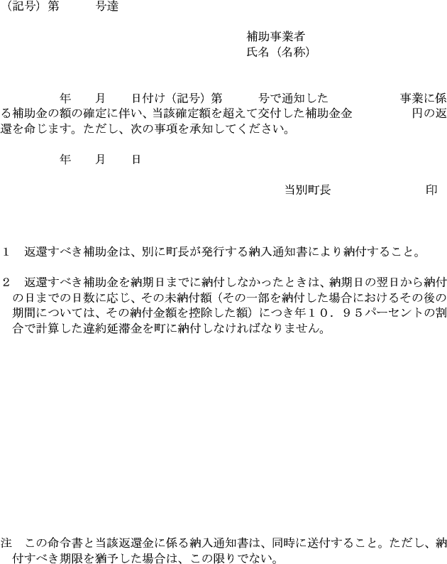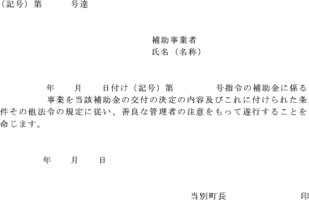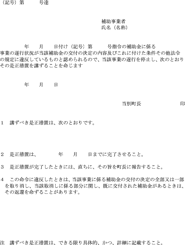 別記様式第26号により当該補助事業等を遂行すべきことを命ずることができる。