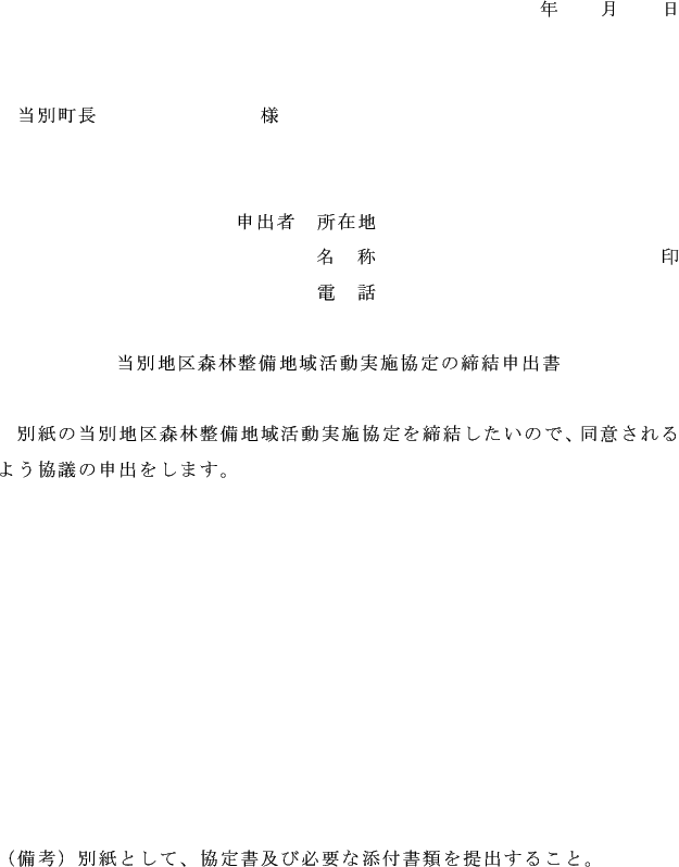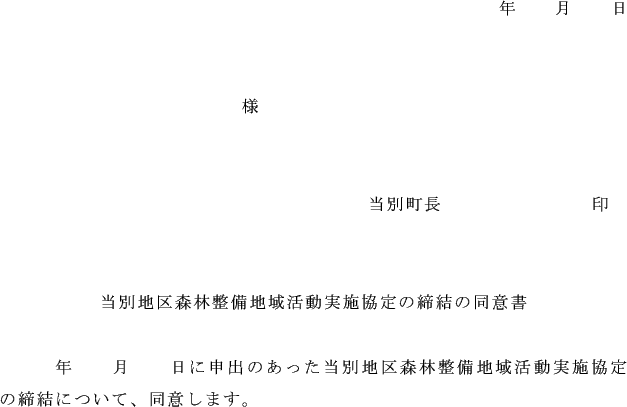 2 町長は、申出の内容を確認のうえ、適当と認められる場合には、協定を締結し、森林整備地域活動実施協定の締結の同意書(