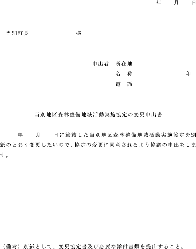 第3条 協定締結者は、協定内容に変更があった場合には、森林整備地域活動実施協定の変更申出書(