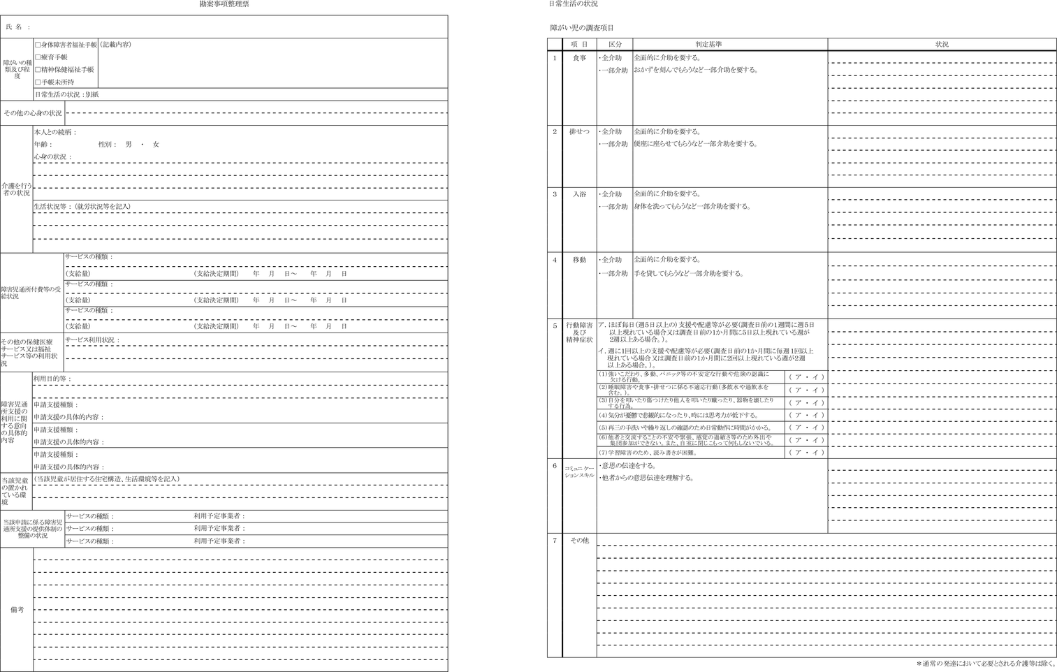 第3条 法第21条の5の6第2項の規定による申請に係る障がい児についての調査は、勘案事項整理票(