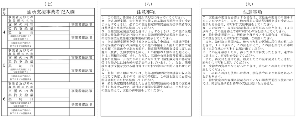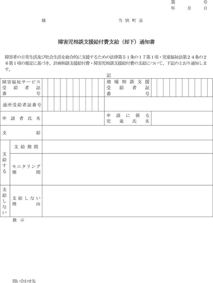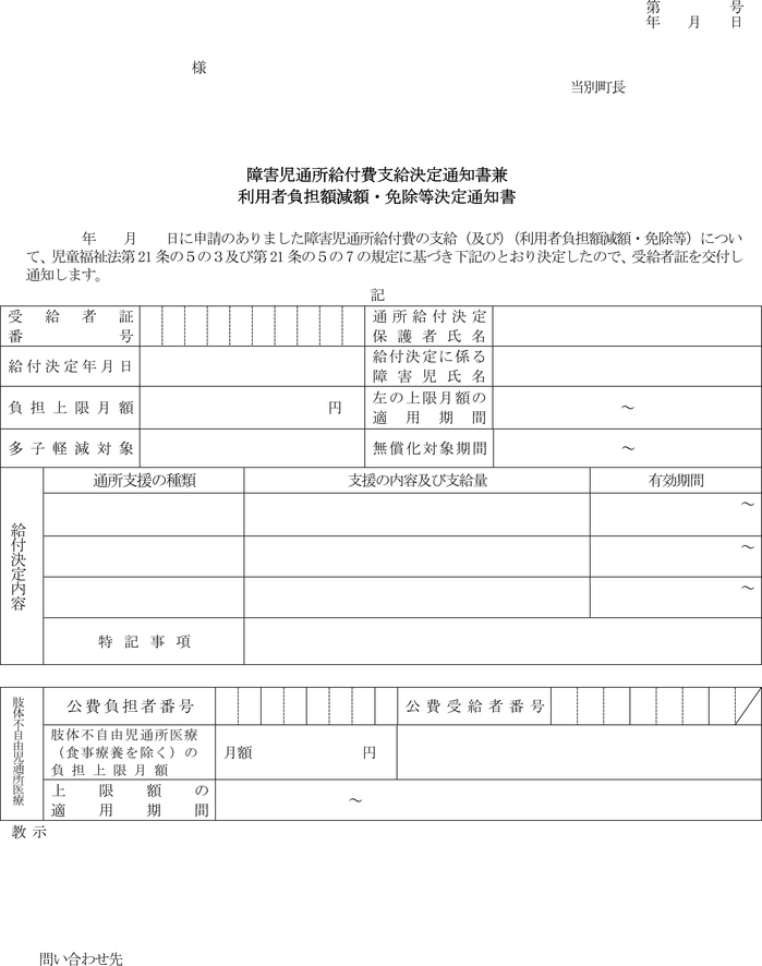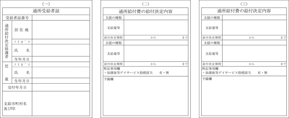 別記様式第3号)により申請者に通知するとともに、通所受給者証(