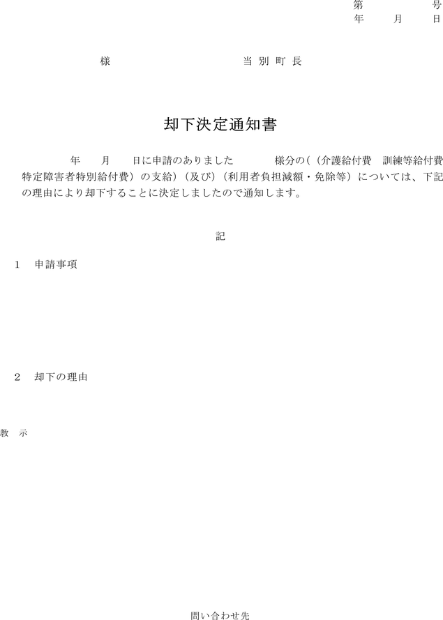 (支給申請の却下決定通知)