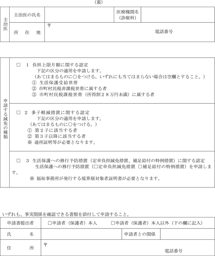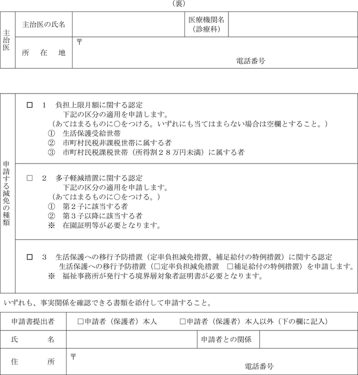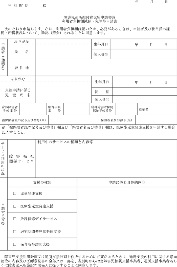 第2条 省令第18条の6第1項に規定する通所給付決定の申請は、障害児通所給付費支給申請書兼利用者負担額減額・免除等申請書(