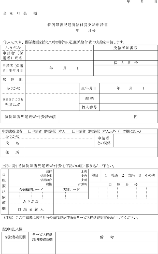 (特例障害児通所給付費等の支給申請)