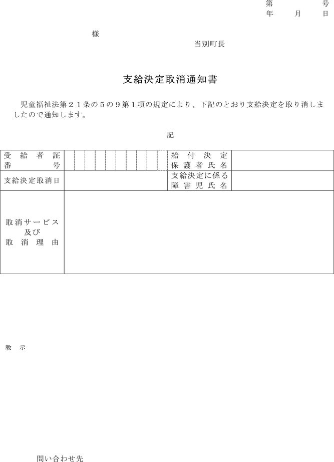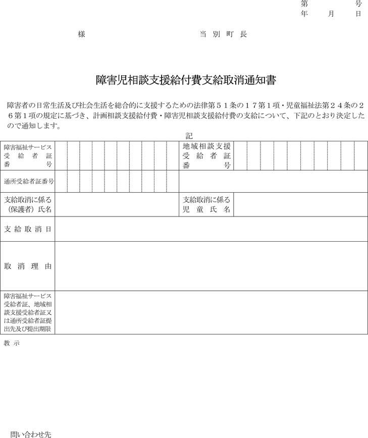 (障害児相談支援給付費の支給の取消しの通知)